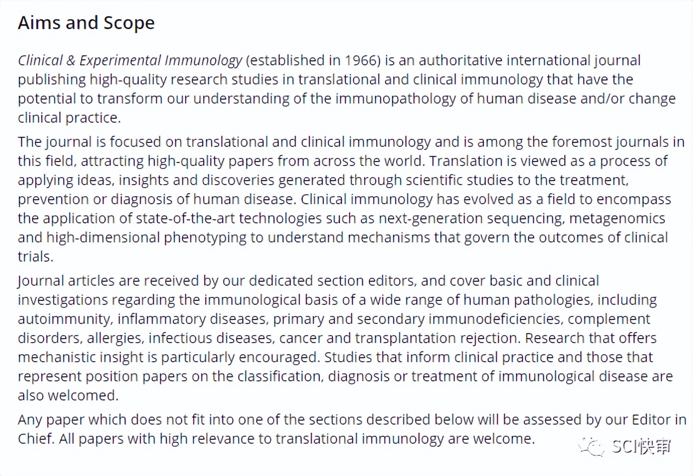 Clinical and Experimental Immunology是免疫学领域的期刊,涵盖广泛的人类病理免疫的基础和临床研究,包括自身免疫、炎症性疾病、原发性和继发性免疫缺陷、补体障碍、过敏、传染病、癌症和移植排斥反应。