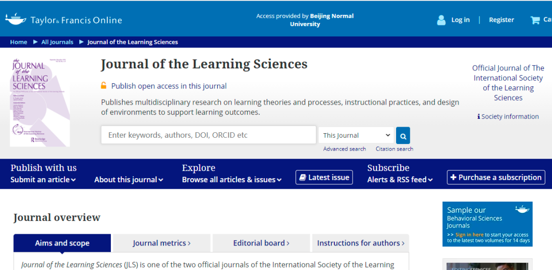 JOURNAL OF THE LEARNING SCIENCES 的收稿范围,期刊是如此介绍的(截取部分内容),详情请阅读: