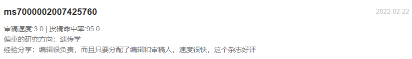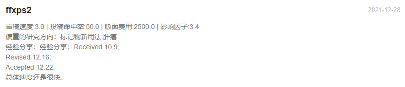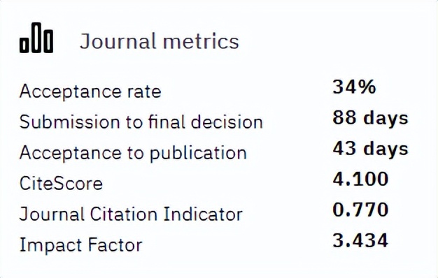 Disease Markers每年出版12期;官网表明2020年从提交稿件到第一次决定平均为43天,从提交到最后编辑决定平均为88天;通过对近期已发表文章审稿速度的抽样统计,大部分文章的审稿周期都是在1-3个月左右便可接受,最快的20天就可以接受!慢的也有个别需要6个多月,总说审稿有快有慢,不算很稳定,官网给出的接受率为34%,不算低了。