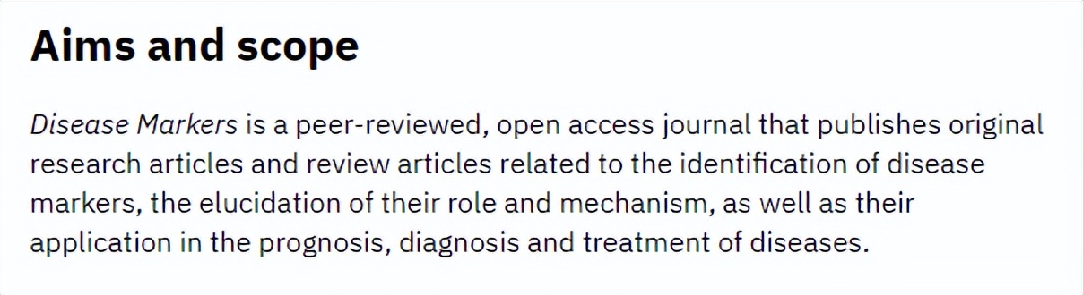 今天给大家推介的期刊是:Disease Markers