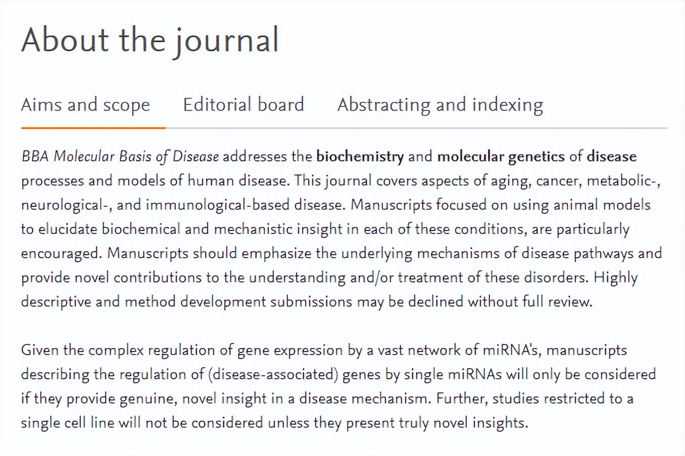 Biochimica Et Biophysica Acta-Molecular Basis of Disease是本多学科期刊,涵盖老化、癌症、代谢、神经和免疫疾病的各个方面。