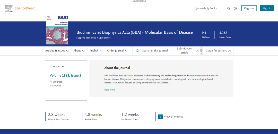 期刊官网:https://www.journals.elsevier.com/biochimica-et-biophysica-acta-molecular-basis-of-disease