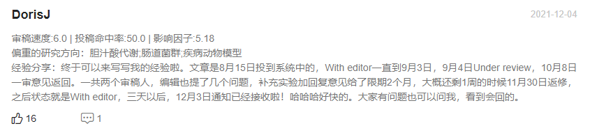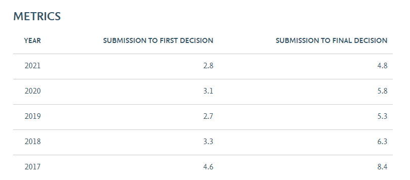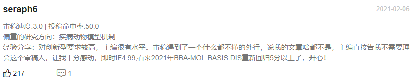 Biochimica Et Biophysica Acta-Molecular Basis of Disease每年出版12期;官网表明2021年从提交稿件到初步决定平均为2.8周,从提交到最后编辑决定平均为4.8周;通过对近期已发表文章审稿速度的抽样统计,大部分文章的审稿周期都是在2-4个月左右便可接受,最快的2个多月就可以接受!慢的需要4个多月,审稿周期整体算稳定,不过比起官网给出的数据还是偏慢一些。