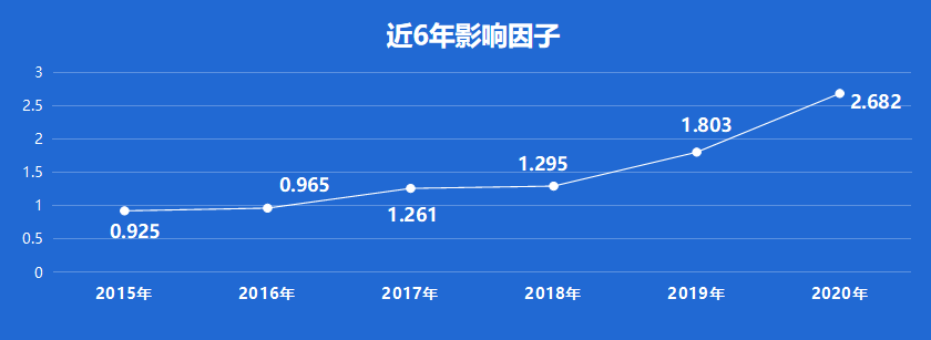 Journal of Healthcare Engineering,ISSN:2040-2295,E-ISSN:2040-2309,2010年创刊,出版国家:英国;由HINDAWI LTD出版。近6年影响因子呈上升趋势,2015年至2016年影响因子接近1分,2017年至2019年均为1分+,2020年影响因子突破2分,为:2.682。即时因子为3.16。