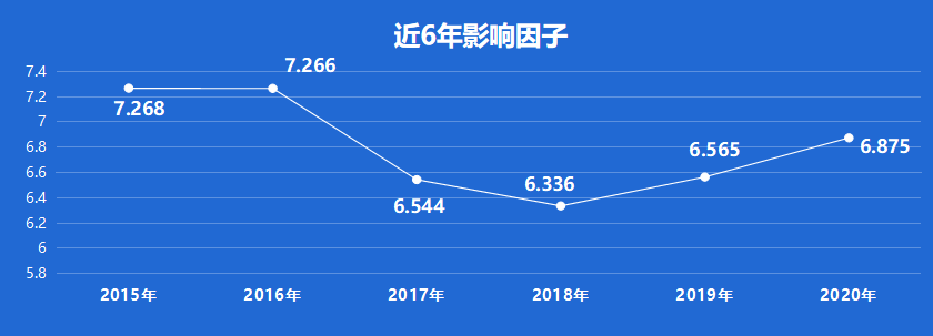 Clinical Pharmacology & Therapeutics,ISSN:0009-9236,E-ISSN:1532-6535,1960年创刊,出版国家:美国;由WILEY出版。近6年影响因子整体下降了些,2015年至2016年影响因子均为7分+,2017年开始下降至6分+,2020年影响因子为:6.875。即时因子为5.91。