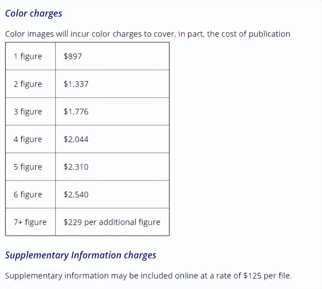 根据官网消息,在Clinical Pharmacology & Therapeutics投稿需要提交75美元的提交费;接受出版的手稿需要支付版面费,每个期刊页面将收取 54 美元的费用;补充信息每个文件收费125美元;如需印刷纸质版需要彩图费用(如下图),不过一般是不需要的;另外,如果可以选择OnlineOpen,每篇文章收取3300美元的文章处理费,折合人民币约为20800元,从官网近期上线的文章来看,大部分还是会选择OA。整体下来发表一篇的文章确实不便宜。