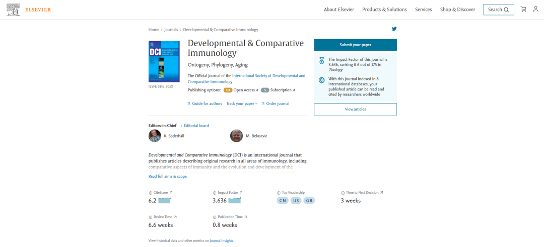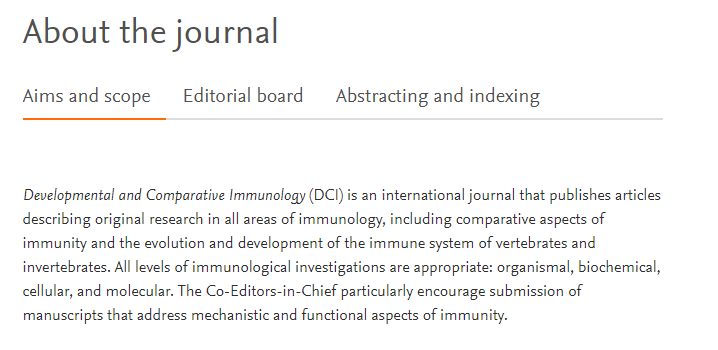 期刊官网:https://www.journals.elsevier.com/developmental-and-comparative-immunology