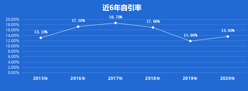 Developmental and Comparative Immunology近6年自引率均最高2017年为1.7%,相对较高;2020年自引率为13.6%,虽然不算很低,但也还在安全线内。