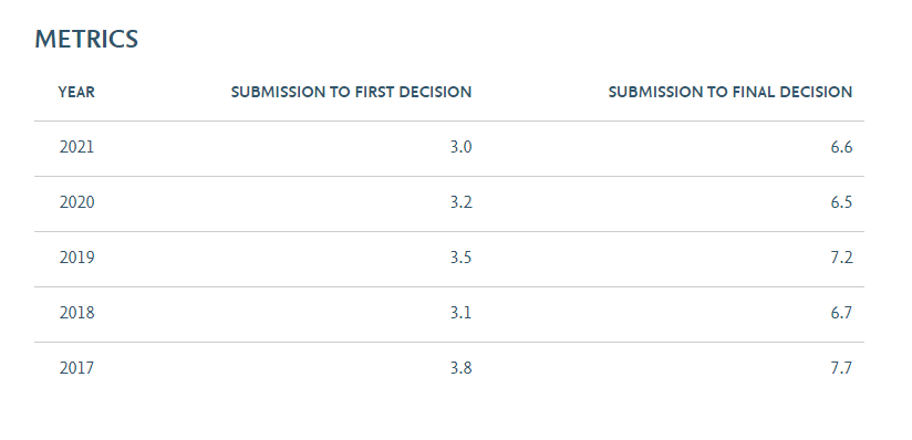 Developmental and Comparative Immunology每年出版12期;官网表明2021年从提交稿件到初步决定平均为3周,从提交到最后编辑决定平均为6.6周;通过对近期已发表文章审稿速度的抽样统计,大部分文章的审稿周期都是在2-4个月左右便可接受,最快的2个多月就可以接受!慢的需要4个多月,审稿周期整体算稳定,不过比起官网给出的数据还是偏慢一些。