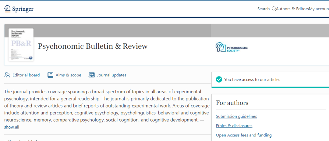 PSYCHONOMIC BULLETIN & REVIEW 的收稿范围,期刊是如此介绍的(截取部分内容),详情请阅读:
