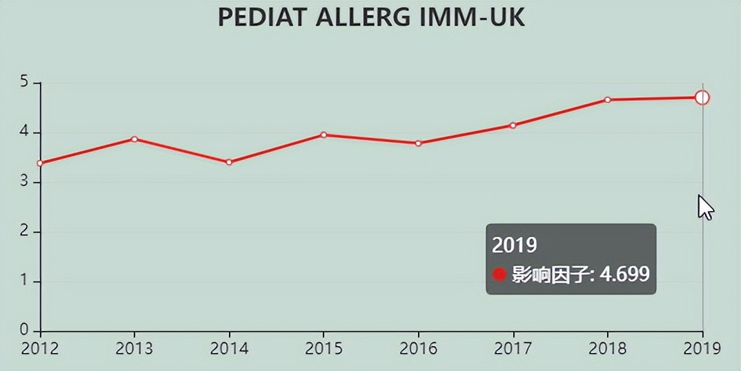 今天,我们来看看这本SCI期刊:PEDIATRIC ALLERGY AND IMMUNOLOGY。从现有的记录来看,PEDIATRIC ALLERGY AND IMMUNOLOGY 的2021年影响因子(JCR2020)是6.377,2020年是4.699,比2020年增长1.678,增长比例35.71%。