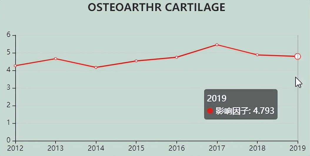 今天,我们来看看这本SCI期刊:OSTEOARTHRITIS AND CARTILAGE。从现有的记录来看,OSTEOARTHRITIS AND CARTILAGE 的2021年影响因子(JCR2020)是6.576,2020年是4.793,比2020年增长1.783,增长比例37.20%。