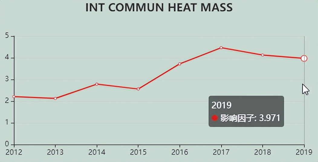 今天,我们来看看这本SCI期刊:INTERNATIONAL COMMUNICATIONS IN HEAT AND MASS TRANSFER。从现有的记录来看,INTERNATIONAL COMMUNICATIONS IN HEAT AND MASS TRANSFER 的2021年影响因子(JCR2020)是5.683,2020年是3.971,比2020年增长1.712,增长比例43.11%。