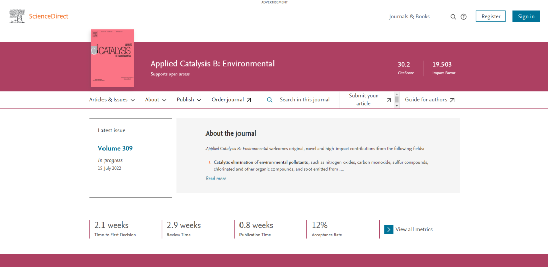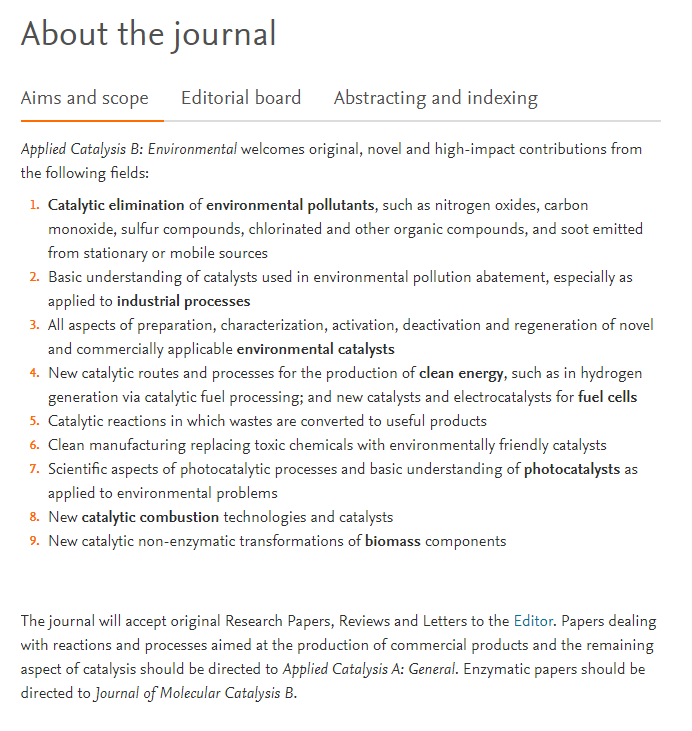 期刊官网:https://www.journals.elsevier.com/applied-catalysis-b-environmental