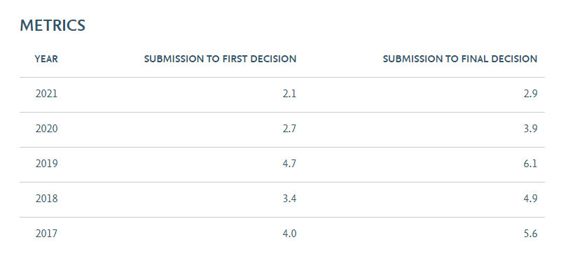 Applied Catalysis B-Environmental每年出版12期;官网表明2021年从提交稿件到初步决定平均为2.1周,从提交到最后编辑决定平均为2.9周;通过对近期已发表文章审稿速度的抽样统计,大部分文章的审稿周期都是在2个月左右便可接受,最快的1个多月就可以接受!慢的需要3个多月,审稿周期整体算稳定也比较快,不过比起官网给出的数据还是偏慢一些。该刊作为高分杂志,接受率比较低,仅为12%。