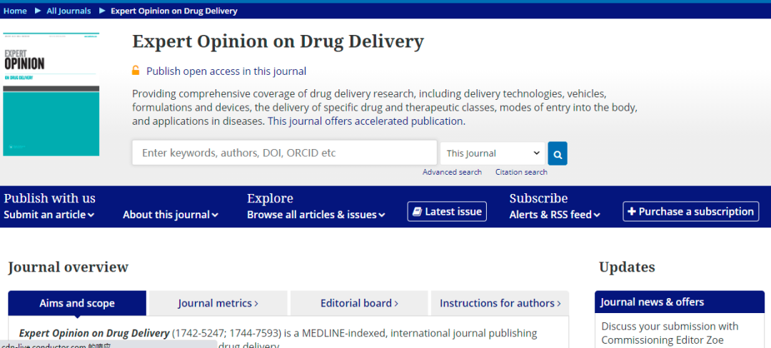 Expert Opinion on Drug Delivery 的收稿范围,期刊是如此介绍的(截取部分内容),详情请阅读: