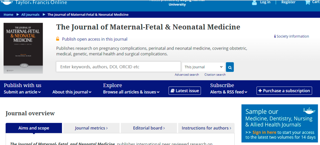 Journal of Maternal-Fetal & Neonatal Medicine 的收稿范围,期刊是如此介绍的(截取部分内容),详情请阅读: