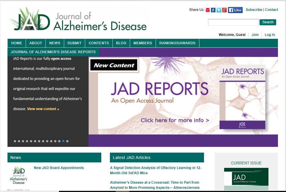 TheJournal of Alzheimer's Disease(JAD) is an international multidisciplinary journal to facilitate progress in understanding the etiology, pathogenesis, epidemiology, genetics, behavior, treatment and psychology of Alzheimer's disease.