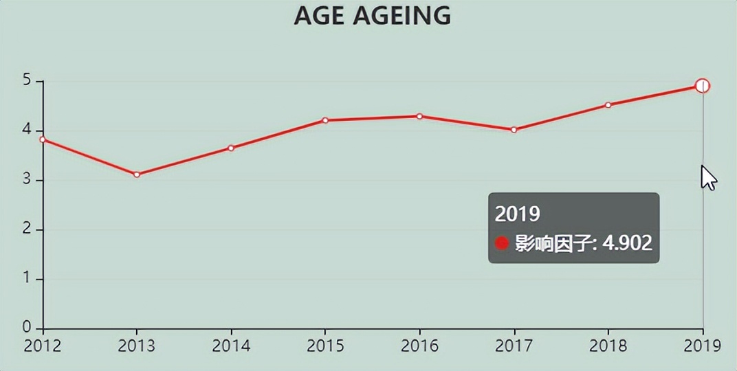 今天,我们来看看这本SCI期刊:AGE AND AGEING。从现有的记录来看,AGE AND AGEING 的2021年影响因子(JCR2020)是10.668,2020年是4.902,比2020年增长5.766,增长比例117.63%。
