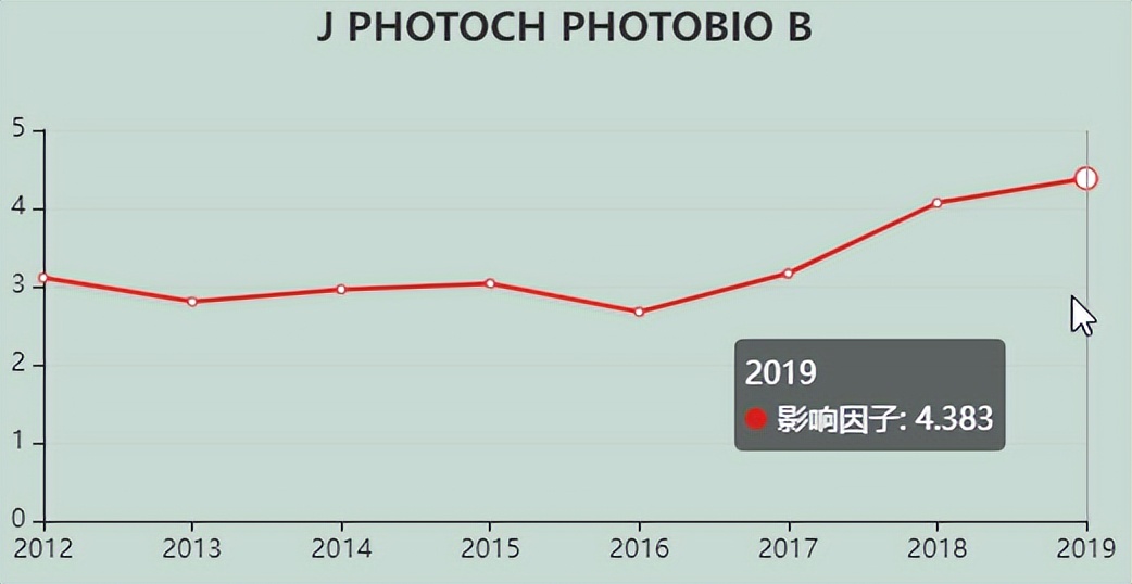 今天,我们来看看这本SCI期刊:JOURNAL OF PHOTOCHEMISTRY AND PHOTOBIOLOGY B-BIOLOGY。从现有的记录来看,JOURNAL OF PHOTOCHEMISTRY AND PHOTOBIOLOGY B-BIOLOGY 的2021年影响因子(JCR2020)是6.252,2020年是4.383,比2020年增长1.869,增长比例42.64%。