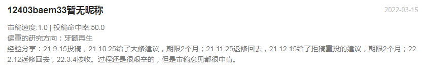 Journal Of Dental Research当前月刊,官网表明:从提交稿件到第一个决定的平均时间:18天!近期上线的文章上只有录用跟见刊的时间,没有完整的审稿周期,所以也不得参考。