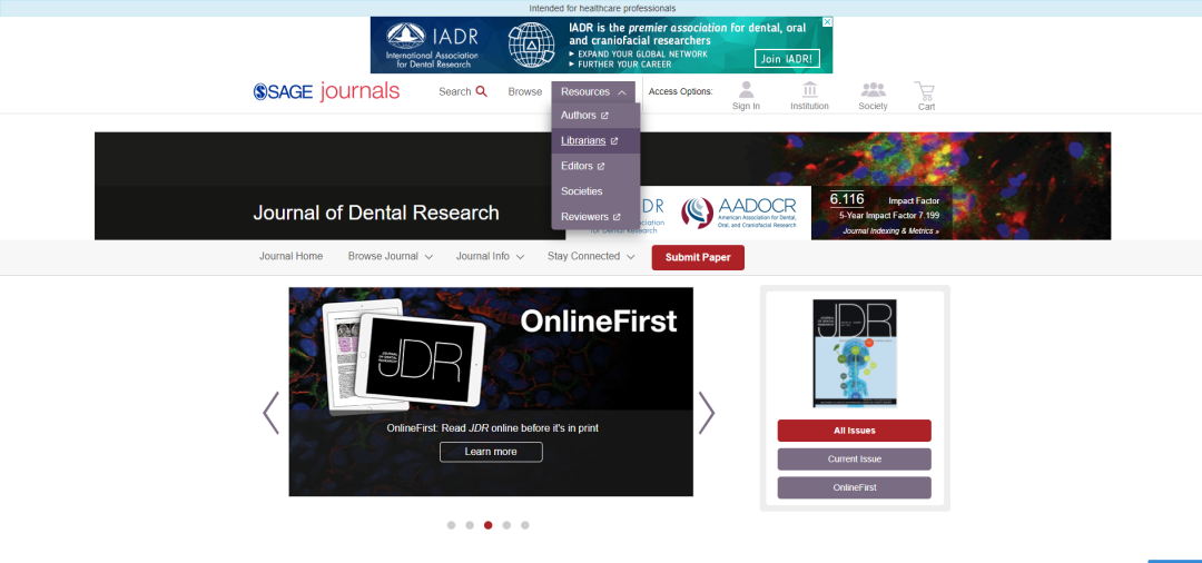 今天给大家推介的期刊是:Journal Of Dental Research