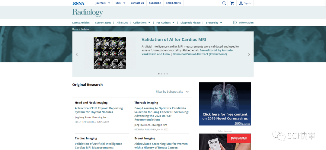 期刊官网:https://pubs.rsna.org/journal/radiology
