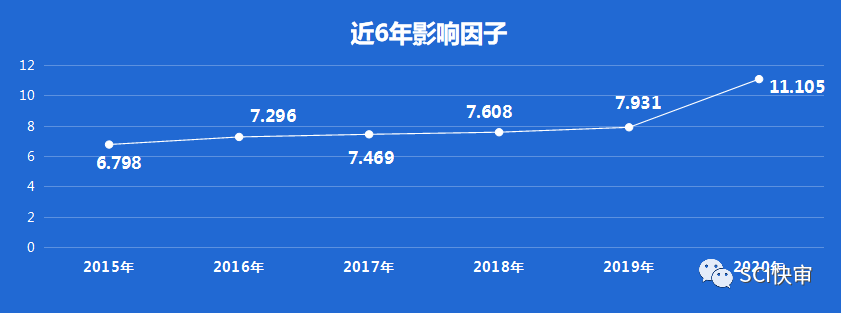 RADIOLOGY,ISSN:0033-8419,E-ISSN:1527-1315;1915年创刊;出版地区:美国;由RADIOLOGICAL SOC NORTH AMERICA出版。近5年影响因子呈上升趋势,从5分涨至11分,2020年影响因子为11.105,即时因子为23.12。