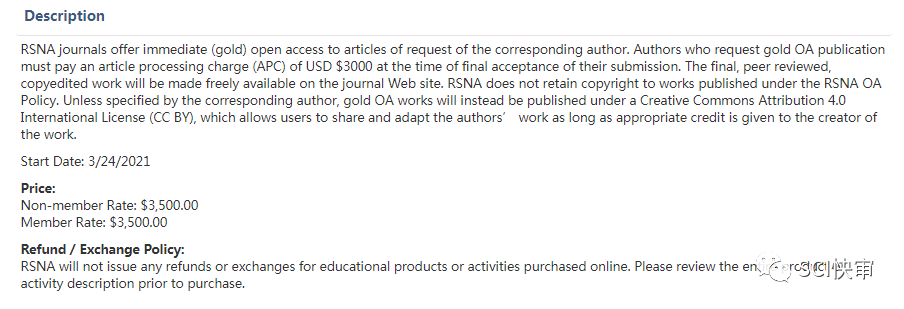 根据官网消息,RADIOLOGY可以选择使用传统的发表途径或通过黄金开放获取 (OA) 发表,作者支付文章出版费 (APC)为3000 美元,折合人民币约为20085元,价格比较贵。