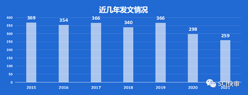 RADIOLOGY近几年发文量均在两三百篇左右,2020年开始下降至200多篇,2021年国人发文占比约为7%,国人发文占比不大。