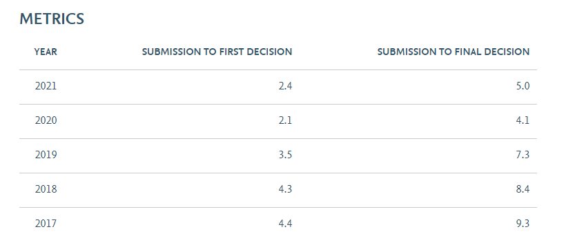 Antiviral Research当前为月刊,官网表明:从稿件提交到文章初稿决定平均为2.4周,从稿件提交到最终编辑决定平均为5周;通过对已发表文章审稿速度的抽样统计,大部分文章的审稿周期都是在2-4个月左右便可接受,快的2个多月便可接受,慢的需要4个月多月,总的来说审稿速度比较快,也相对稳定。