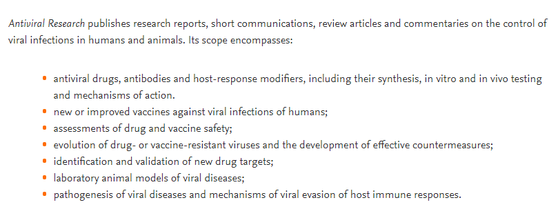 期刊官网:https://www.journals.elsevier.com/antiviral-research