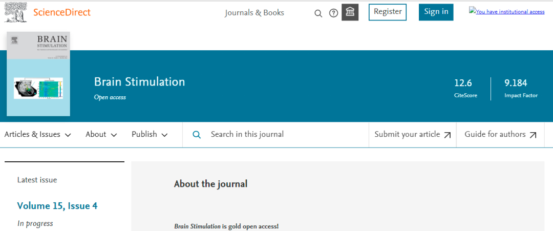 今天,我们来看看这本SCI期刊:Brain Stimulation。从现有的记录来看,Brain Stimulation 的2022年影响因子(JCR2021)是9.184,2021年影响因子8.955,2020年影响因子6.565。