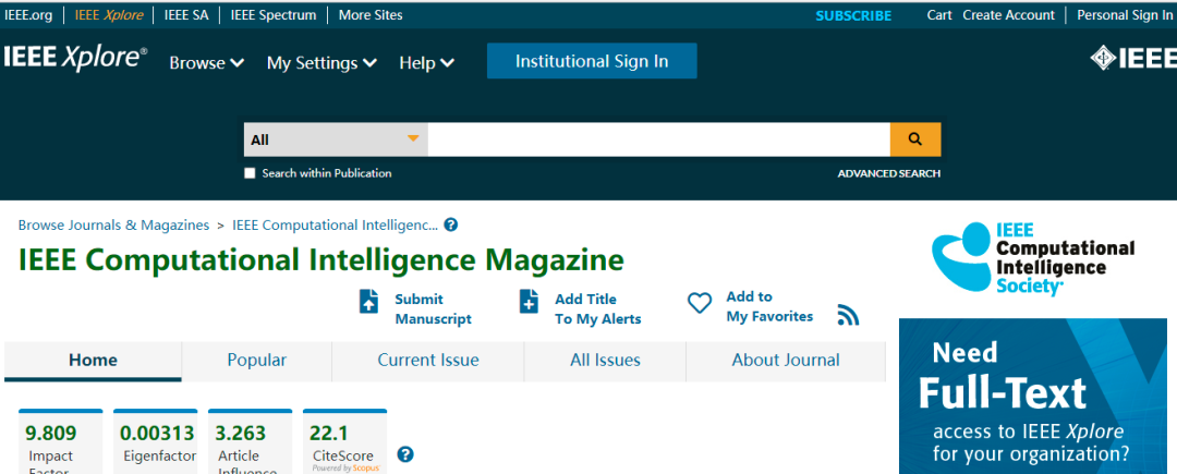 今天,我们来看看这本SCI期刊:IEEE Computational Intelligence Magazine。从现有的记录来看,IEEE Computational Intelligence Magazine 的2022年影响因子(JCR2021)是9.809,2021年影响因子11.356,2020年影响因子9.083。