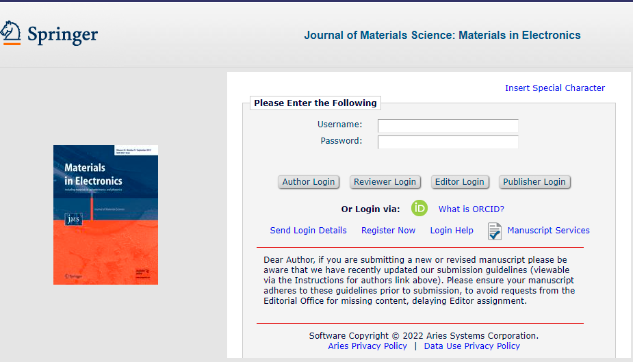The scope of the journal includes the synthesis, growth and processing of new materials (such as compounds and alloys), structural studies by various experimental techniques, characterization of microstructure, structure-property relationships, electrical, optical, dielectric and magnetic properties. The Journal presents materials-related papers in newly developing fields such as low-dimensional structures and devices, spintronic materials and structures, topological insulators, energy applications (e.g. energy harvesting and storage, optoelectronics, solar cells, photocatalysis, green photonics), solid-state ionics, thermoelectrics and phononics, materials for heterogeneous integrated circuit applications, new materials for memory/storage applications, glasses, glass-ceramics and linear/non-linear crystal materials and lasers, high Tc superconductors, organic semiconductors, conducting polymers, thick-film materials and new contact technologies, as well as materials used in established electronic and optoelectronic devices and circuits. Materials related papers are also accepted in the emerging field of quantum technologies, including electronic/spintronic/photonic and related materials systems for quantum entanglement applications, plasmonic materials and sensors, communications and metrology. The papers should contain extensive and novel experimental work with rigorous analysis and sound interpretation. In all cases, the main focus of the paper must be materials related.