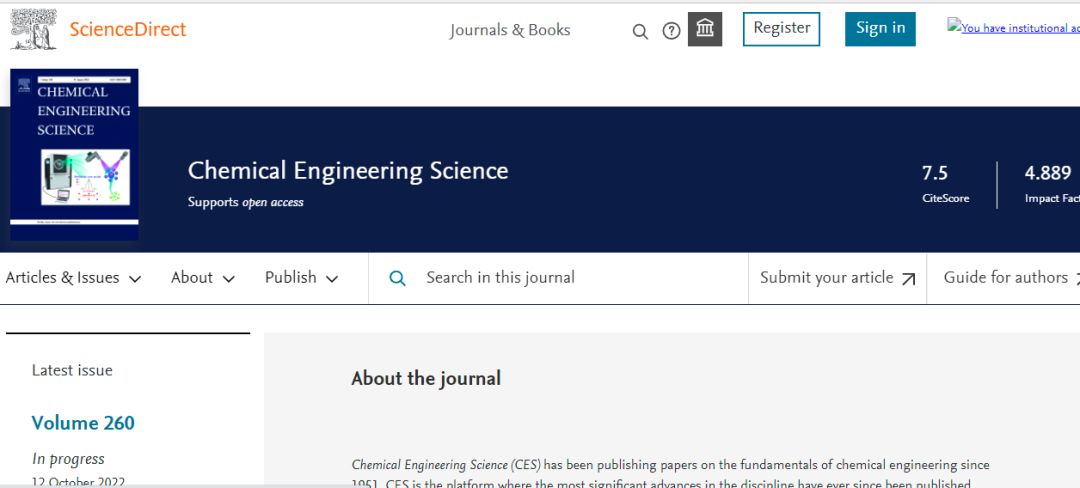今天,我们来看看这本SCI期刊:CHEMICAL ENGINEERING SCIENCE。从现有的记录来看,CHEMICAL ENGINEERING SCIENCE 的2022年影响因子(JCR2021)是4.889,2021年影响因子4.311,2020年影响因子3.871。
