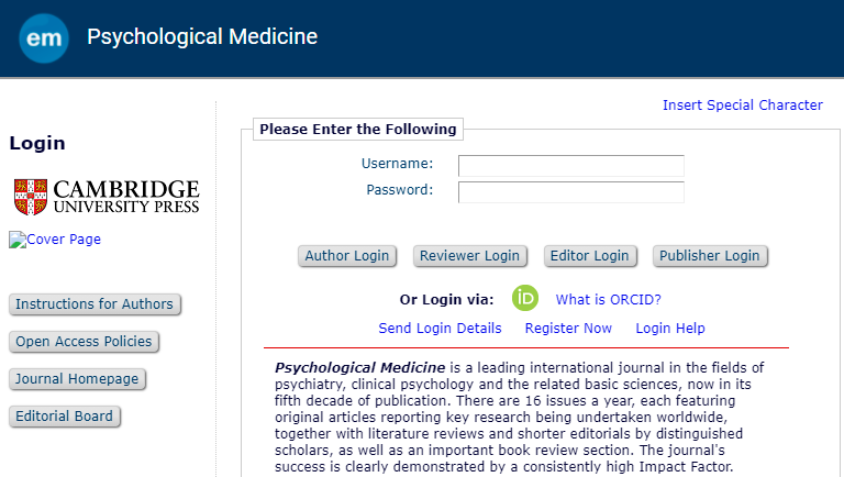 Psychological Medicine is a leading international journal in the fields of psychiatry, clinical psychology and the related basic sciences. The journal includes original articles reporting key research being undertaken worldwide, together with literature reviews and shorter editorials by distinguished scholars.