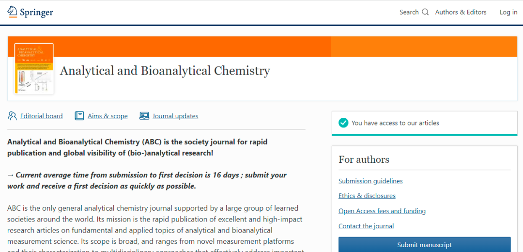 ANALYTICAL AND BIOANALYTICAL CHEMISTRY 的收稿范围,期刊是如此介绍的(截取部分内容),详情请阅读: