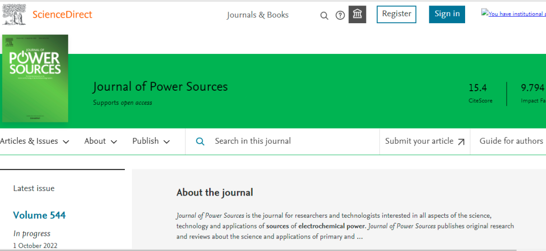 今天,我们来看看这本SCI期刊:JOURNAL OF POWER SOURCES。从现有的记录来看,JOURNAL OF POWER SOURCES 的2022年影响因子(JCR2021)是9.794,2021年影响因子9.127,2020年影响因子8.247。