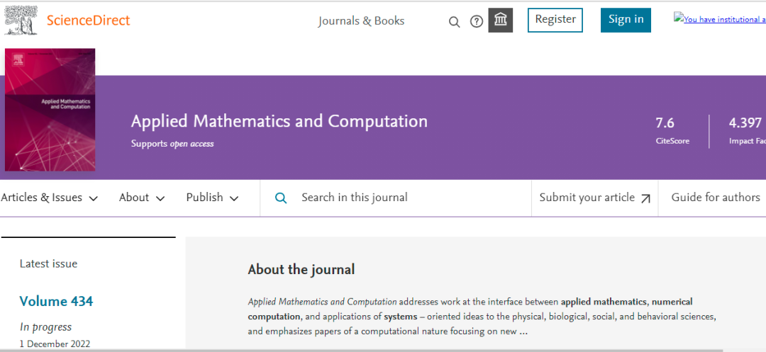 今天,我们来看看这本SCI期刊:APPLIED MATHEMATICS AND COMPUTATION。从现有的记录来看,APPLIED MATHEMATICS AND COMPUTATION 的2022年影响因子(JCR2021)是4.397,2021年影响因子4.091,2020年影响因子3.472。